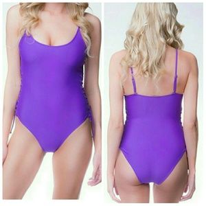 👙🔥 Fully Lined Purple One Piece Swimsuit • Supportive Padding • Adjustable Straps • Sexy Side Lace Up