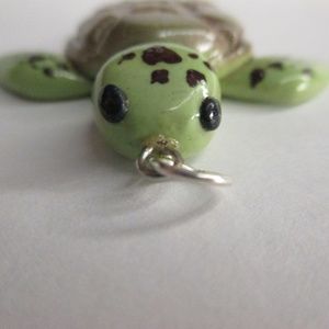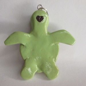 An adorable polymer clay turtle charm glazed with 3-4 coats of varnish for extra durability with a little heart shell.