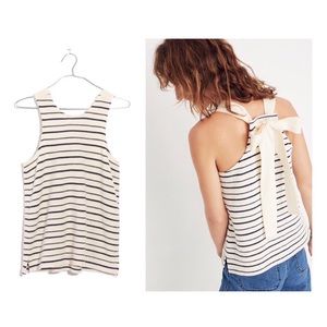 Classic stripes help distinguish a versatile, waffle-knit tank finished with straps that can be tied into a playful bow at the back.