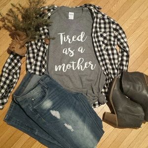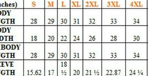 SIZES ARE LISTED BELOW. LENGTH IS TOP OF SHOULDER TO HEM, WIDTH PIT TO PIT: