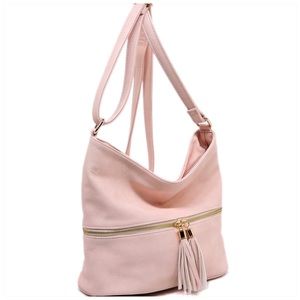 Zip Crossbody Bucket Satchel Blush