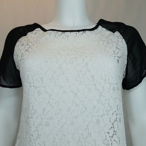 💰LUSH Black & White Lace Short Sleeve Tee Shirt