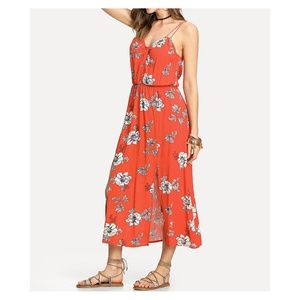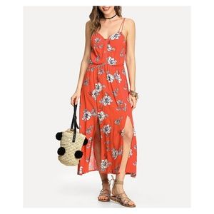 Red Floral Sleeveless M Slit Maxi Dress