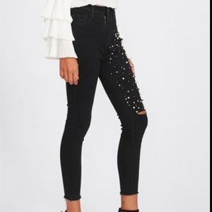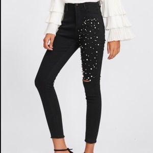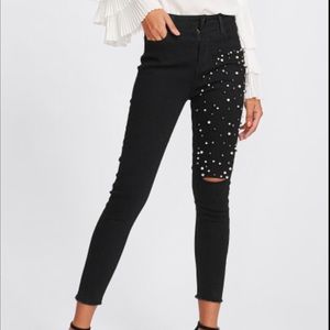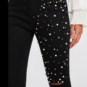 🆕Black raw edge Capri jeans w/pearl thigh detail