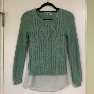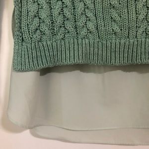 Moth green sweater with a lighter green tank top insert. Bought at Anthropologie. Super cute and comfortable. Great condition, may have shrunken very slightly in the wash. Size S