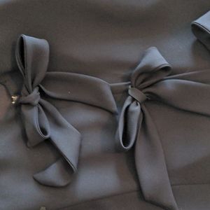 Layered shift, fitted, zip back with 3 bows, navy blue. 18 inches across waist. fitted biasing front and back. those can be detached easily.