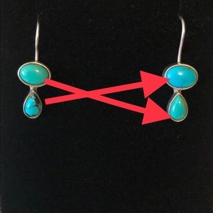 📌 Please look at the photos as they are a part of the description. Also, these earrings are opposites (look at the color of turquoise)