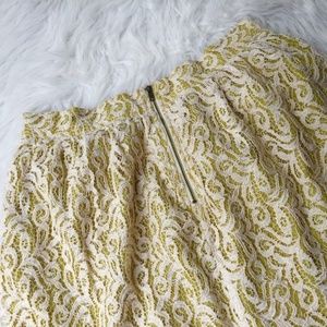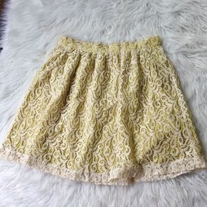 Under Skies Citron Floral Lace Crochet Back Zip A-Line Mini Skirt Women's Large