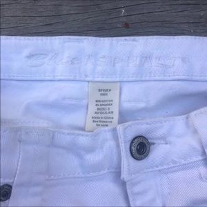 Frayed bottoms very cute white skinny jeans. Tagged Sz 5 but fits a Sz 3/4. Like new condition and so cute!