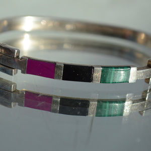 Thank you for looking at this Mexican solid Sterling Silver cuff bracelet with Onyx Malachite and Sugilite