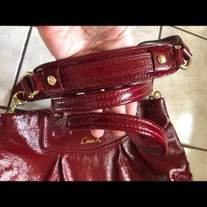 Classy cherry 🍒 red patent leather bag. Only wear shoes on the inside of bag. Hand and shoulder held w heavy yellow gold hardware. Removable straps. Comes w dust bag but not it’s own.