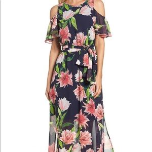 Eliza J floral cold shoulder gown