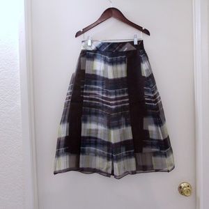 A plaid organza overlay over a matching faille shell lends rich depth to an A-line Marissa Webb skirt. Pleats add volume to the airy piece, which sits at the natural waist for a figure-flattering fit. Hidden back zip. Unlined.