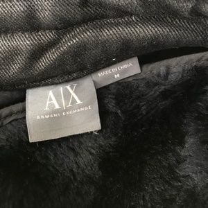 Authentic Armani Exchange black moto style jacket. Extremely warm with removable faux fur interior lining. Great winter jacket. 2 way zipper closure with stand collar.