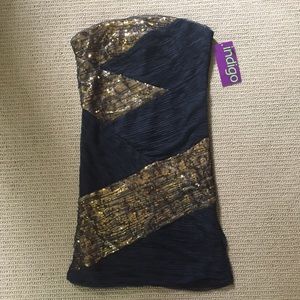 C LUCE strapless black and gold dress size medium