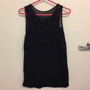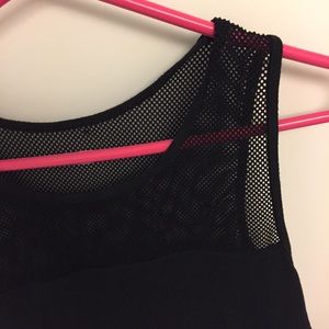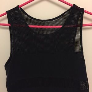 Black tank top with sheer mesh panels. Previously owned and shows some wear, but in good condition! Size Medium. Model photos are the closest similar style I could find.