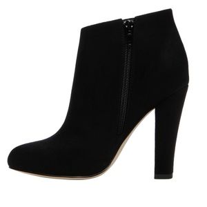 Black Fabric Block Heel Round Toe Ankle Bootie