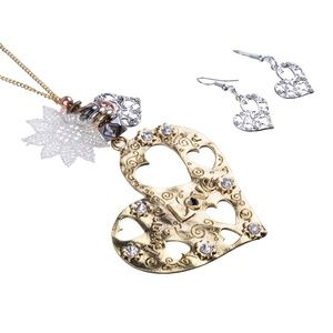 Golden Heart Necklace Set w/ Lace & Accent Stones
