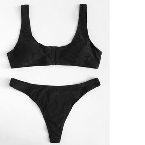 Black Zipper Thong Bikini