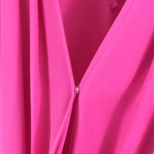 BCBG lightweight sleeveless one piece romper in fuschia pink color. Pockets and back closure. Approximate lying flat measurements below.