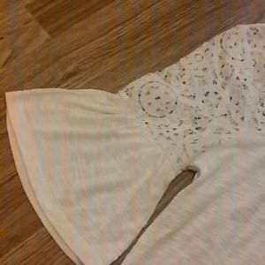 Fun summer white top with lace bodice and bell sleeve. Runs big. Pit to pit approx 18"