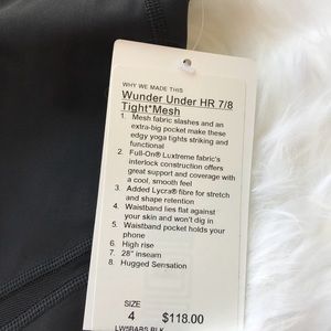 NWT BLACK LULULEMON WUNDER UNDER HIGH RISE MESH