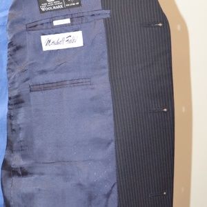 Calvin Klein 44L Sport Coat Blazer Suit Jacket Navy Pinstripes Wool