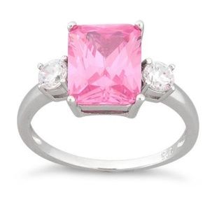 Sterling Silver Triple Rectangular Pink CZ Ring