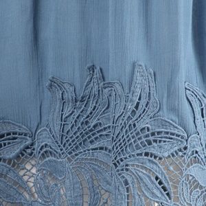 Solid, off shoulder tunic, relaxed fit, with ruffled long sleeves, pleats, elastic band neckline, and lace trim hem. 100% Rayon, easy care gentle cold water wash.