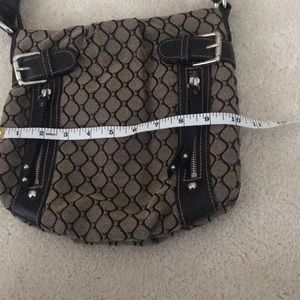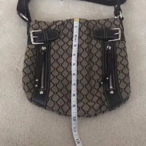 Crossbody purse with zipper closure. Zipper works perfectly. Strap is adjustable but shortest length pictured. Both front zippers work perfectly too.