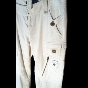 Polo Ralph Lauren Womens Corduroy Cargo Pants Size 4 White High Waist Retro 90s Skinny White Bondage Blue Label Straps Jeans