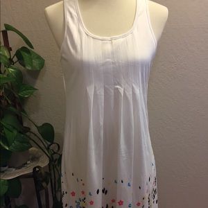 Such a sweet summer dress! Pretty floral design at bottom with pleats at chest! Just a simple classic summer dress to wear! Dress it up or wear it casual...you decide!