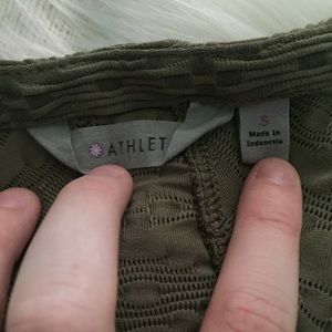 Athleta Military Green Skater Dress. Super cute fit & flare textured dress! Good condition! The back hem has been repaired, but it’s not noticeable when wearing. 92% polyester, 8% spandex. Size S. Bust: 15in Waist: 14.5 Length: 34in. Offers welcome! e