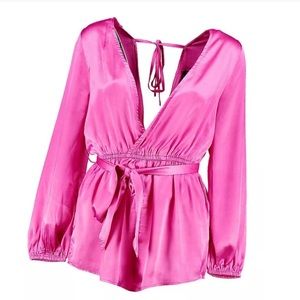 BOOHOO Pink Glossy Satin Playsuit Romper cover-up