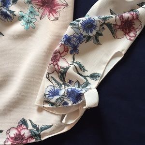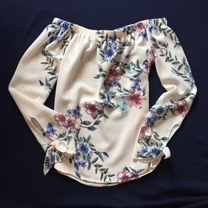 Off-the-shoulder long-sleeve floral top with cute knot detail at the sleeve. New with tags!