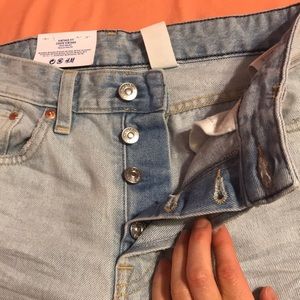Ripped knees. Holes aren’t as open as the photo of the model. After wearing them in the holes will tear more like that. Size 26. Sold out online and most stores. They’re super cute but they don’t fit me as well as I wanted them to. Can be worn so many ways!
