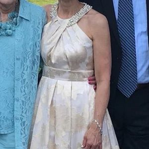 Blush, champagne and gold Eliza J Ball Gown. Altered slightly at bust and hemmed. Dress has pockets! Worn once for a wedding. Perfect condition! Great dress for prom, homecoming or a black-tie wedding!