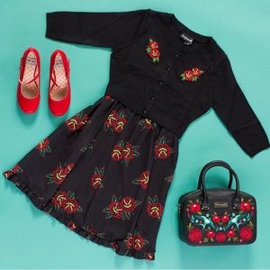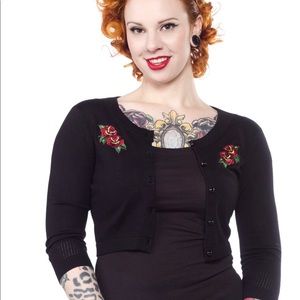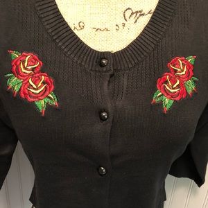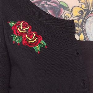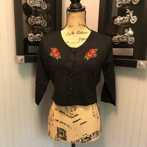 NWT. A delicate cropped pointelle cardigan has traditional tattoo-style rose embroidery. So soft! 100% Vicose. Bust 18”, Length 14”