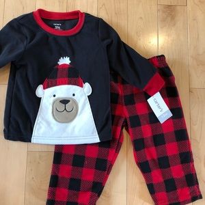 Baby boy pajamas. Size 12 months. Brand is carters. Item is brand new with tags. 2 pieces - fleece material top and bottom. Retail $22.