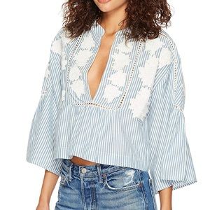 NEW Free People Liya Embroidered Tunic Top Sm/med
