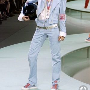 Authentic Chanel Moto Jacket Powder Blue Size 40