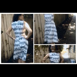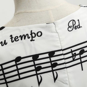 Retro Musical Print A-Line Party Flare Swing Sleeveless Black and White Dress