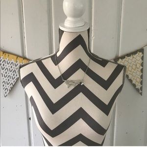 Beautiful silver world map necklace. Lobster clasp in the back. This was purchased from a wholesaler, but ModCloth sells a similar one called there’s a map for that. Silver coated metal alloy. The silver is textured, not smooth, and not real silver. This is a fashion jewelry piece. The length of the whole necklace, with the chain opened up and measured from one end to the other, is approximately 20.5” long.