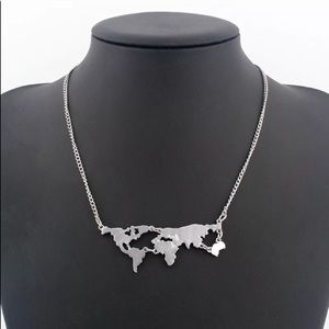 Silver World Map Necklace