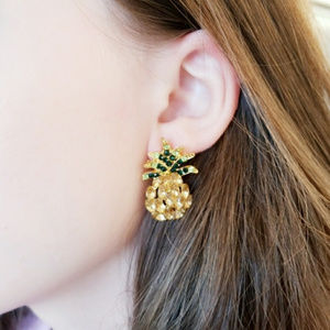 ADORABLE PINEAPPLE STUD EARRINGS, MULTI COLOR RHINESTONES ON GOLD TONED METAL