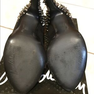 Beautiful black suede peep toe pumps with amazing studded heel. These shoes have been in my collection for year but because I haven’t been able to wear them it is time I let go of my obsession. These are so much fun, perfect for a night out or a special occasion. These would work with a regular pair of jeans and a tee shirt or a nice dress for a night out. ❤️