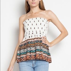 Bohemian White Paisley Print Strapless Top