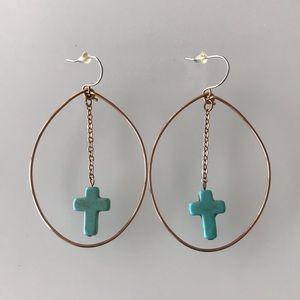 Hand made rose gold cross hoop earrings that were made in Hawaii. These were custom ordered however I never got to use them. Only used once just for this photo. It’s super adorable and super light weight.