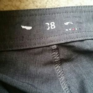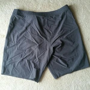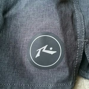 Its a dark gray, Rusty brand boardshorts. Its preowned and in very good condition. There is two faded/peeling labels, one under the zipper on the right side of the shorts and another on the inside tag.