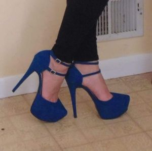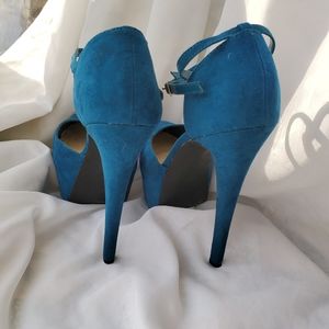 🚫SOLD🚫Super high teal suede platform heels